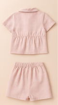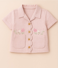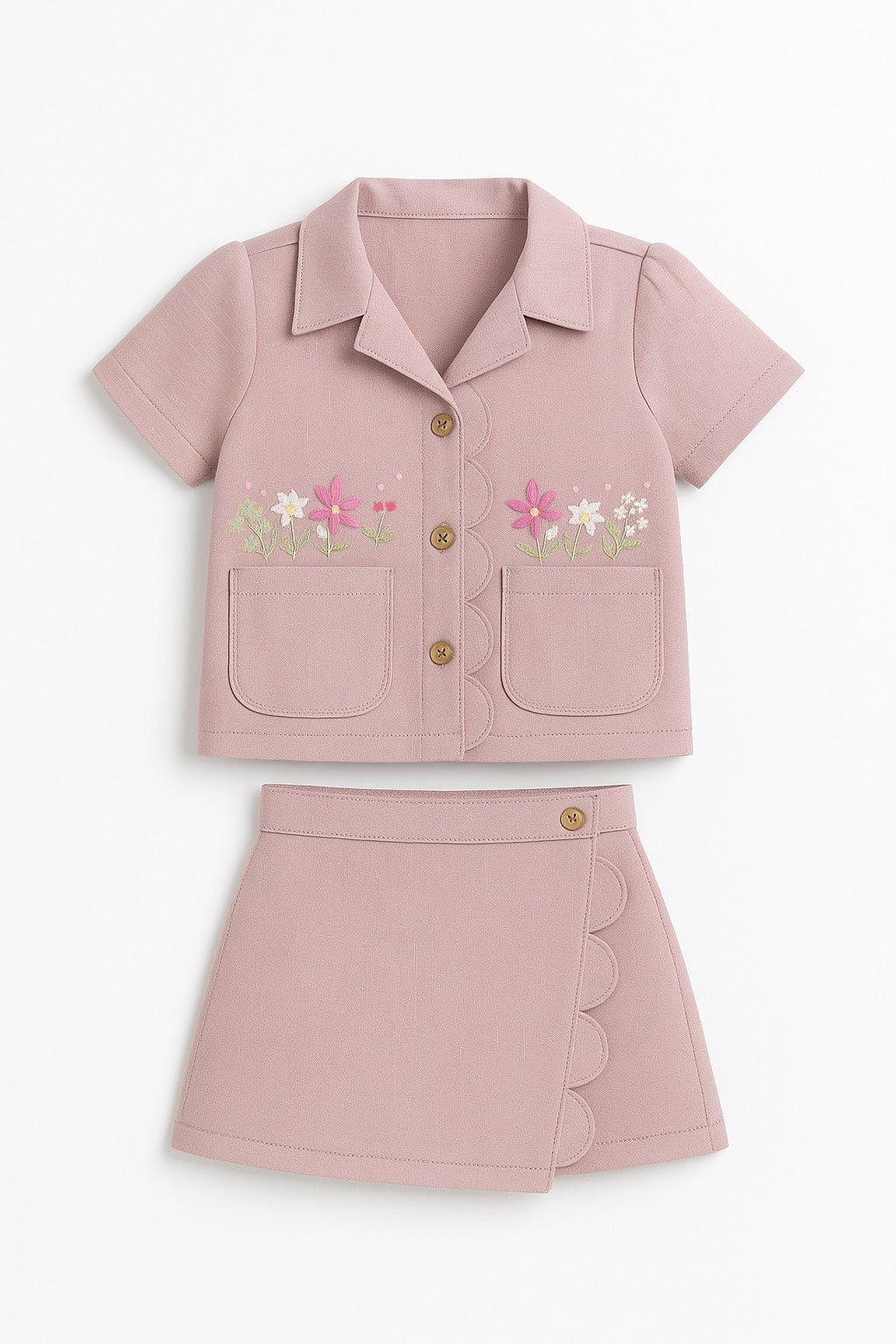 Girls Cotton Embroidered Co-Ord Set Short Sleeve Shirt with Pockets & Skirt Shorts